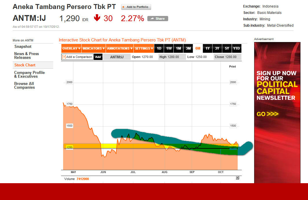 SAHAM PEMEMANG : TRADING BUY SAHAM ANTM Analisa saham 18 Oktober 2012 : Trading buy saham tambang BUMN ini. Resiko di saham A...
